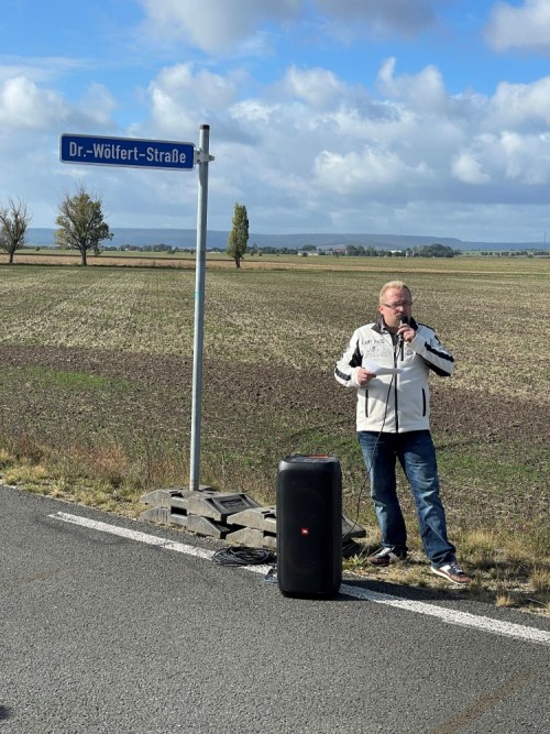 Nun hoffen wir, daß sich auf dem vorbereiteten Gewerbegelände bald die ersten Firmen ansiedeln und den Namen „Dr.-Wölfert-Straße“ mit Leben erfüllen.