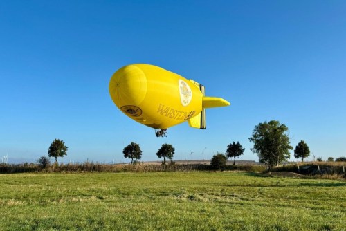 Was der Wind am Sonnabend noch nicht erlaubte: Am Sonntag startete dann auch das bestellte Heißluft-Luftschiff zu mehreren Fahrten und zu Ehren unserer Luftschiff-Pioniere.