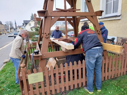 Am 12.11. kamen dann einige Mitglieder des Heimatvereins zusammen, um das neue Lager in die Pyramide einzubauen. Der komplette Aufbau der Pyramide erfolgte später, aber noch rechtzeitig vor dem Anschieben der Pyramide am 30. November.